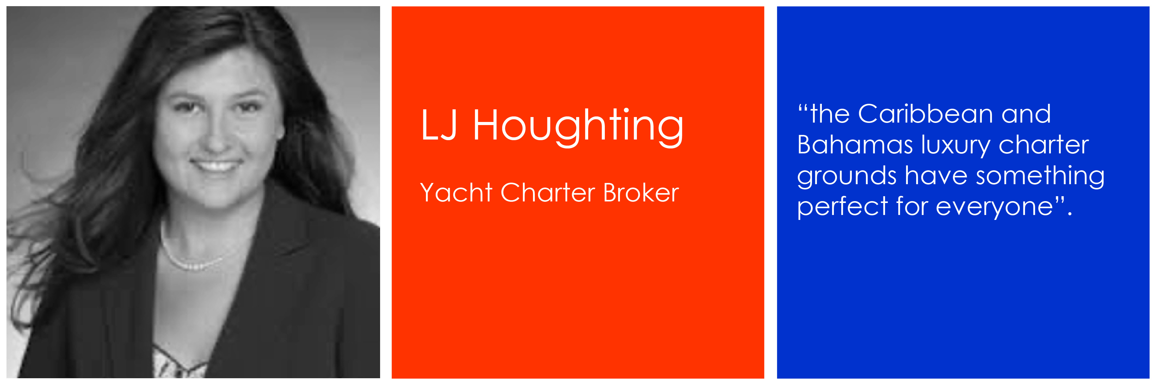 Charter Marketing & Luxury Yacht Charter Broker Lara-Jo 'LJ' Houghting is well known in the yachting industry and has a stellar reputation with owners, clients, captains, crew and media connections established over 20 years.