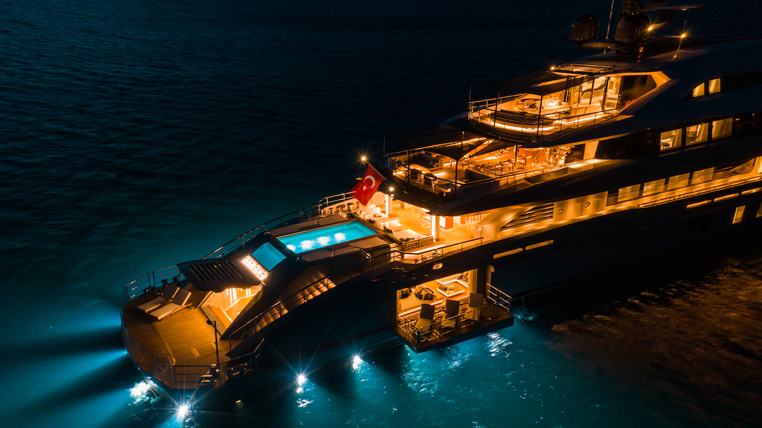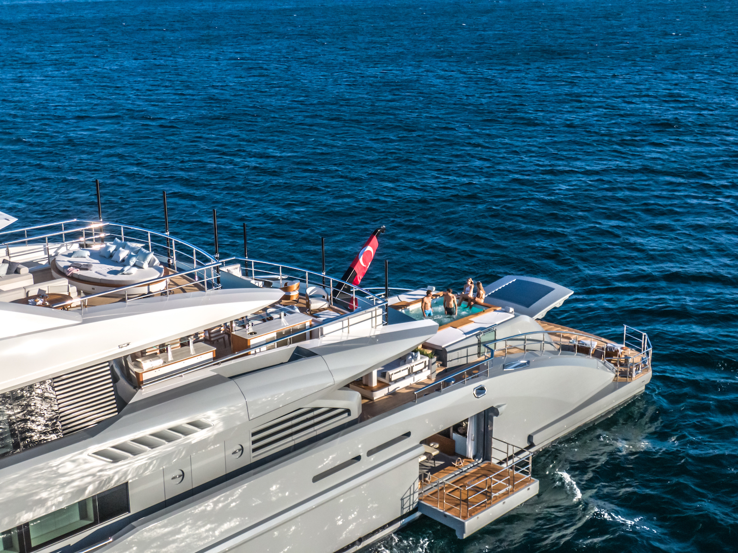 NOTABLE FEATURES OF TATIANA: Environmentally friendly ~ Sundeck Jacuzzi ~ infinity pool on aft deck ~ Largest yacht built in Turkey ~ Vast outdoor living areas and deck spaces ~ helipad ~ stabilisers ~ gym ~ on deck master suite ~ vast selection of water toys ~ WiFi ~ air-conditioning