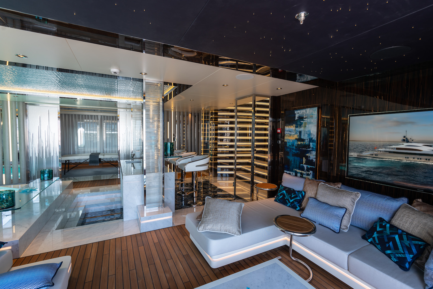 The transom and beach club area also equally impressive, with the beach club offering a fantastic place to relax and unwind next to the water and allowing guests to enjoy the vast selection of water toys.