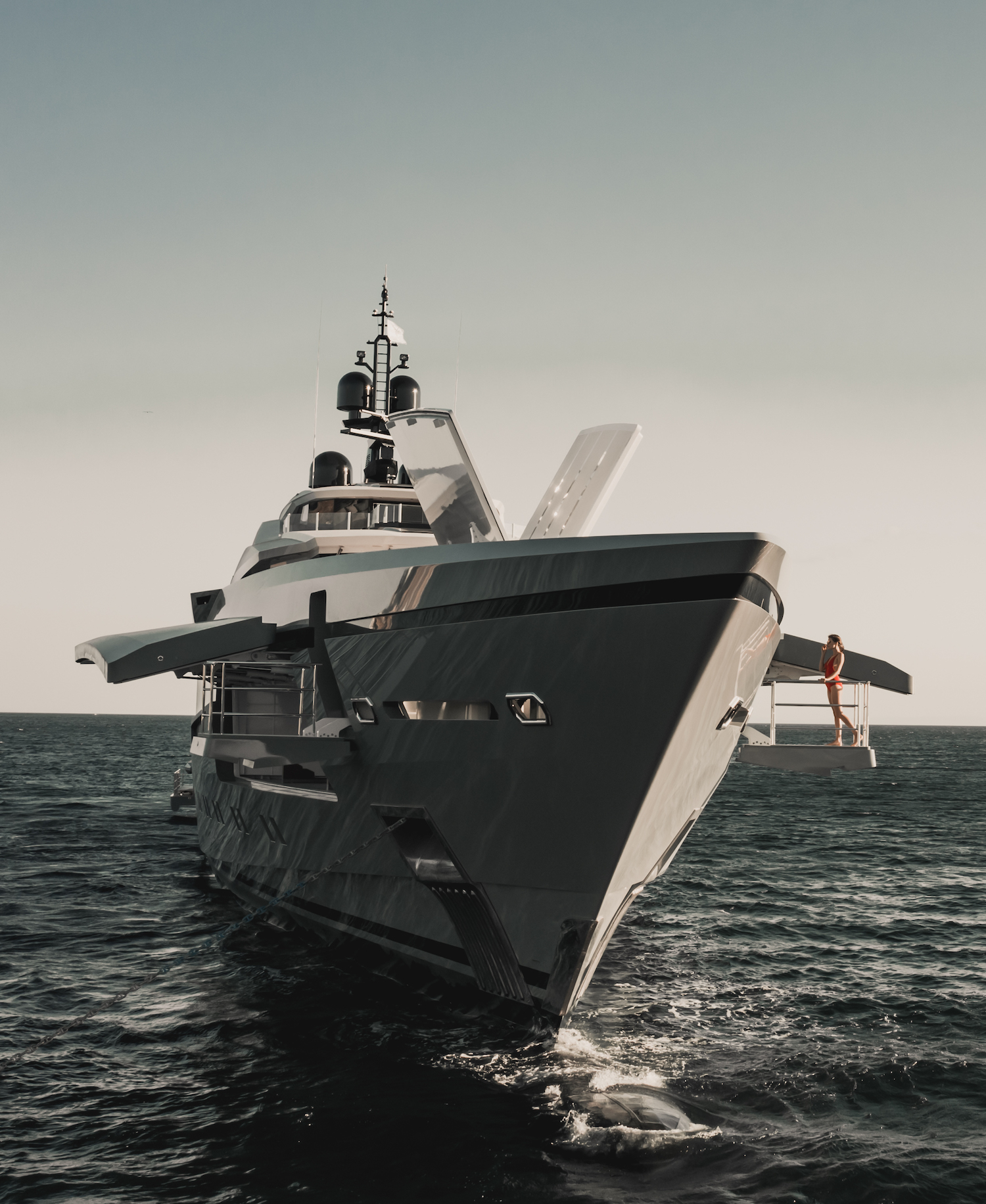 The 80m luxury mega yacht TATIANA is a striking displacement vessel built in steel hull and aluminium superstructure with naval architecture and exterior design by Unique Yacht Design and interiors by H2 Yacht Design.