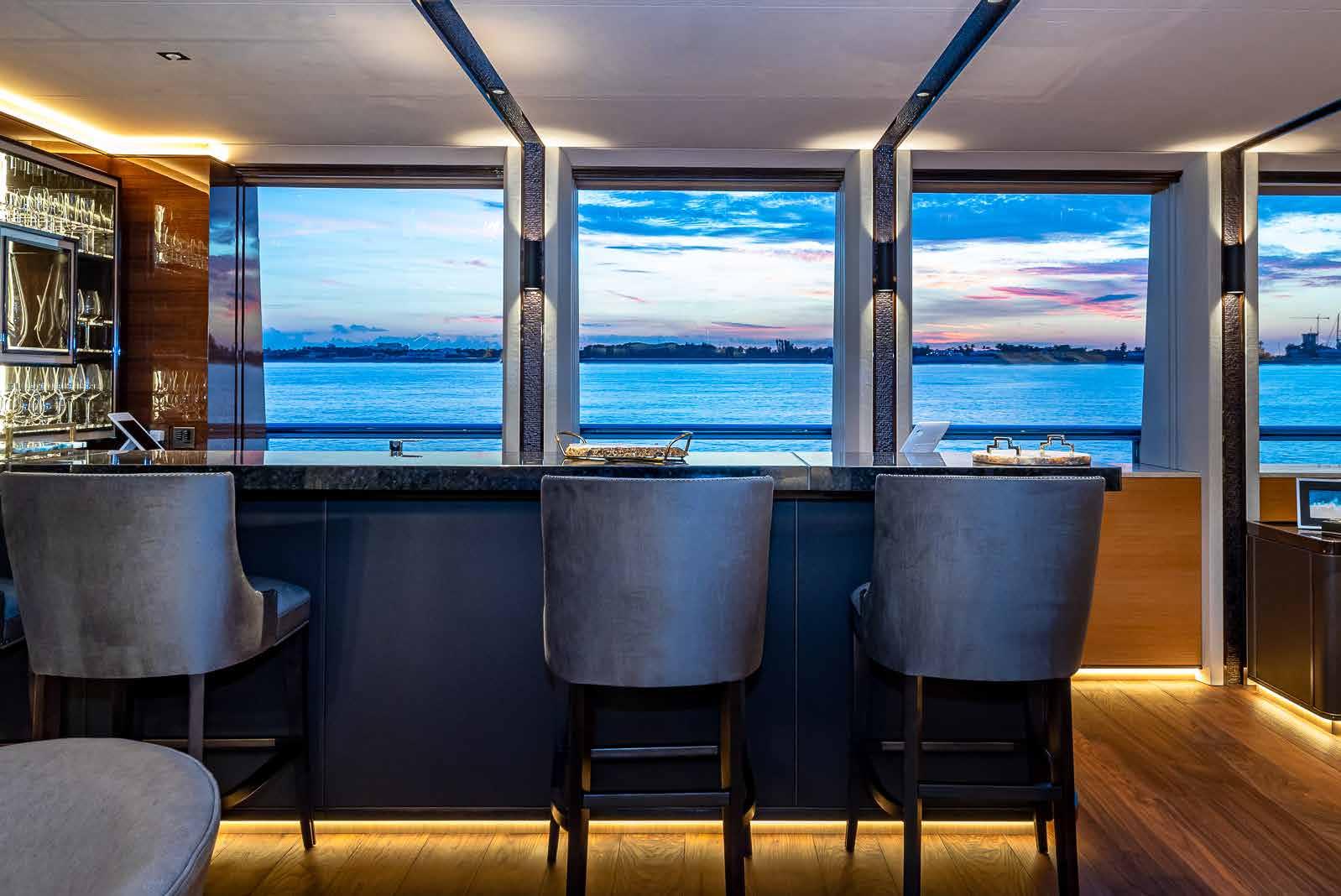 A top deck offer the best views on board, with seating forward of the communications mast for all guests to watch New Year's fireworks or regattas past the anchorage.