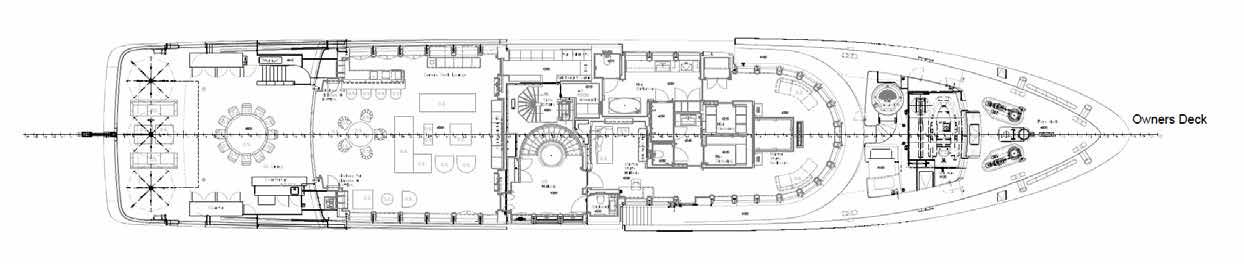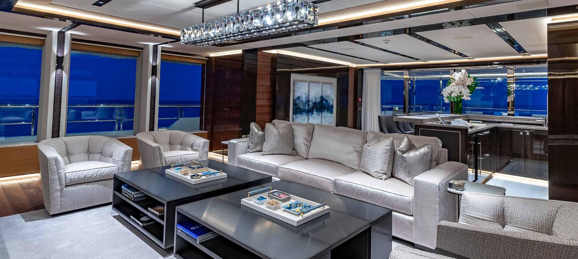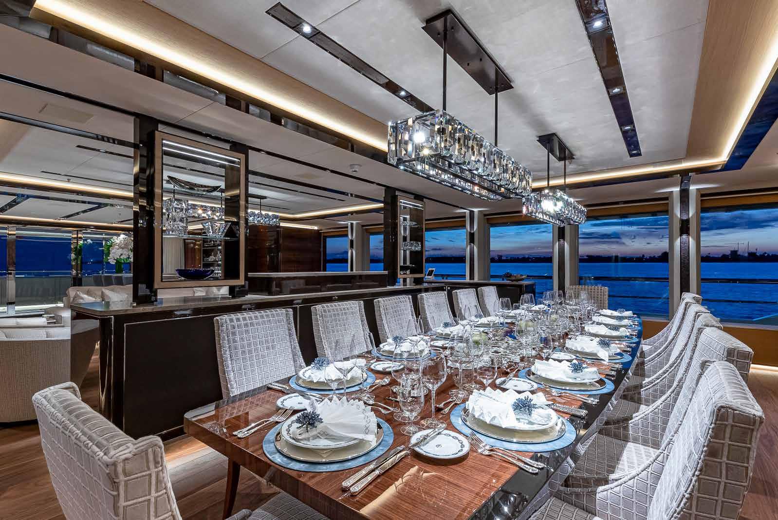 The interiors were styled by Sinot Yacht Architecture & Design, who also styled the exteriors. Few details have been released regarding appearance and layout, however, known amenities include a beach club and sauna along with a main salon and sky lounge.