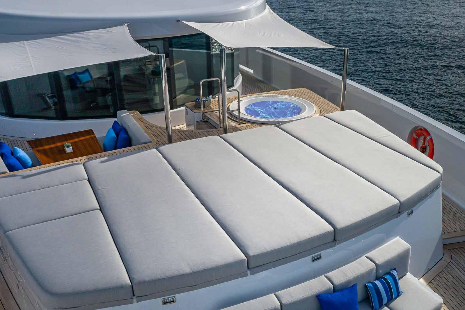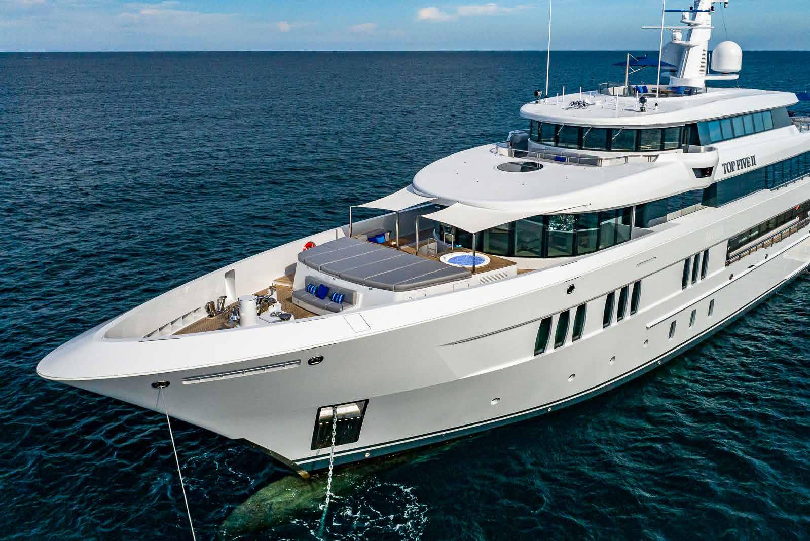 NOTABLE FEATURES OF TOP FIVE II: ~Sundeck Jacuzzi ~Swimming pool ~Beach club ~Sauna ~Fire pit ~Transatlantic range of 3,800 nautical miles ~Air conditioning ~Wi-Fi